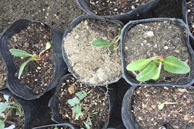 | これらの種からは一切芽が出ていなかったので、昨日追加で種まきをした。 |