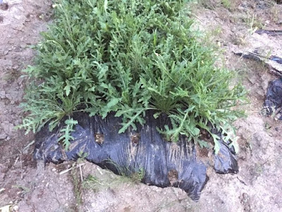 | このくらいの大きさのルッコラは食べ頃だ。 下の方の大きな葉だけを収穫して、3〜4ヶ月間収穫を続けようと思っていた。 |