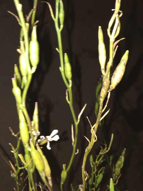 ところで、秋に種まきをして、長い間収穫が出来ていたルッコラは、4月頃が満開状態で、種用に残していた数株が、今はいっぱい莢を付けている。