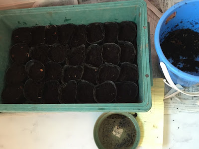 そして、こちらがミミズ堆肥を入れたポットにそれらの種を蒔いたところ。