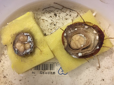 | 2個とも、お尻のところが腐れ、上面には芽が出ず、見えるのはカビ。 |