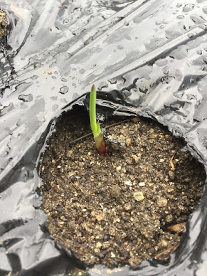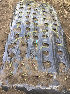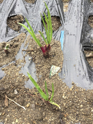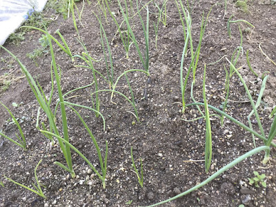 今春玉ねぎを収穫した時に取っておいた出来損ないの小さな1〜2cmの小さな赤玉ねぎを畝に植えてみた。