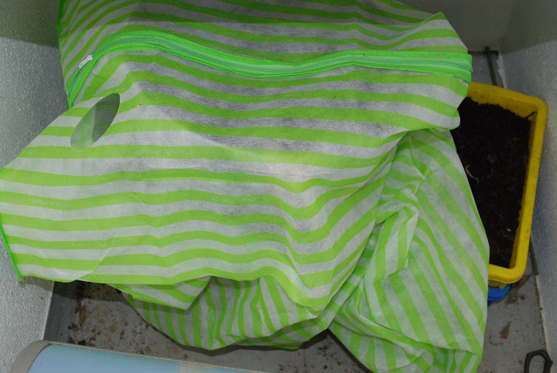 縦プラは堆肥はバケツ1/2ほど収穫。この小屋のみみずは先月に比べ大きく成長していた。