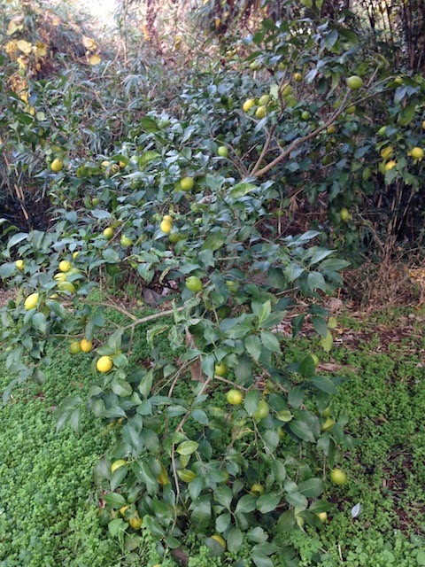 | まだ青い実が多いレモン。 それでも少しづつ収穫している。 |
