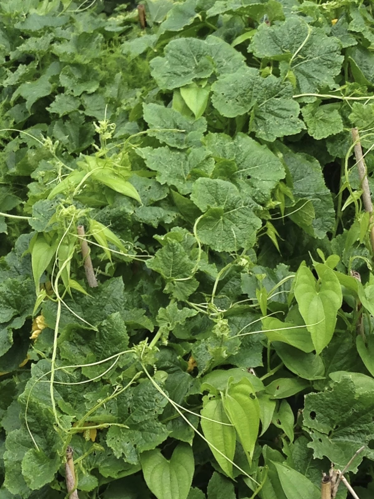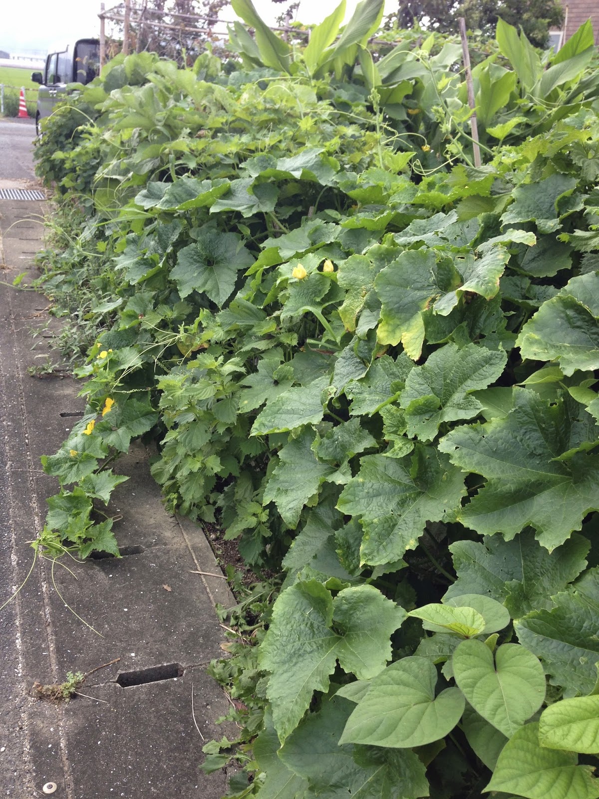 ツクネ芋は順調に蔓を伸ばしているようだが、こちらも冬瓜の勢いに押されている。