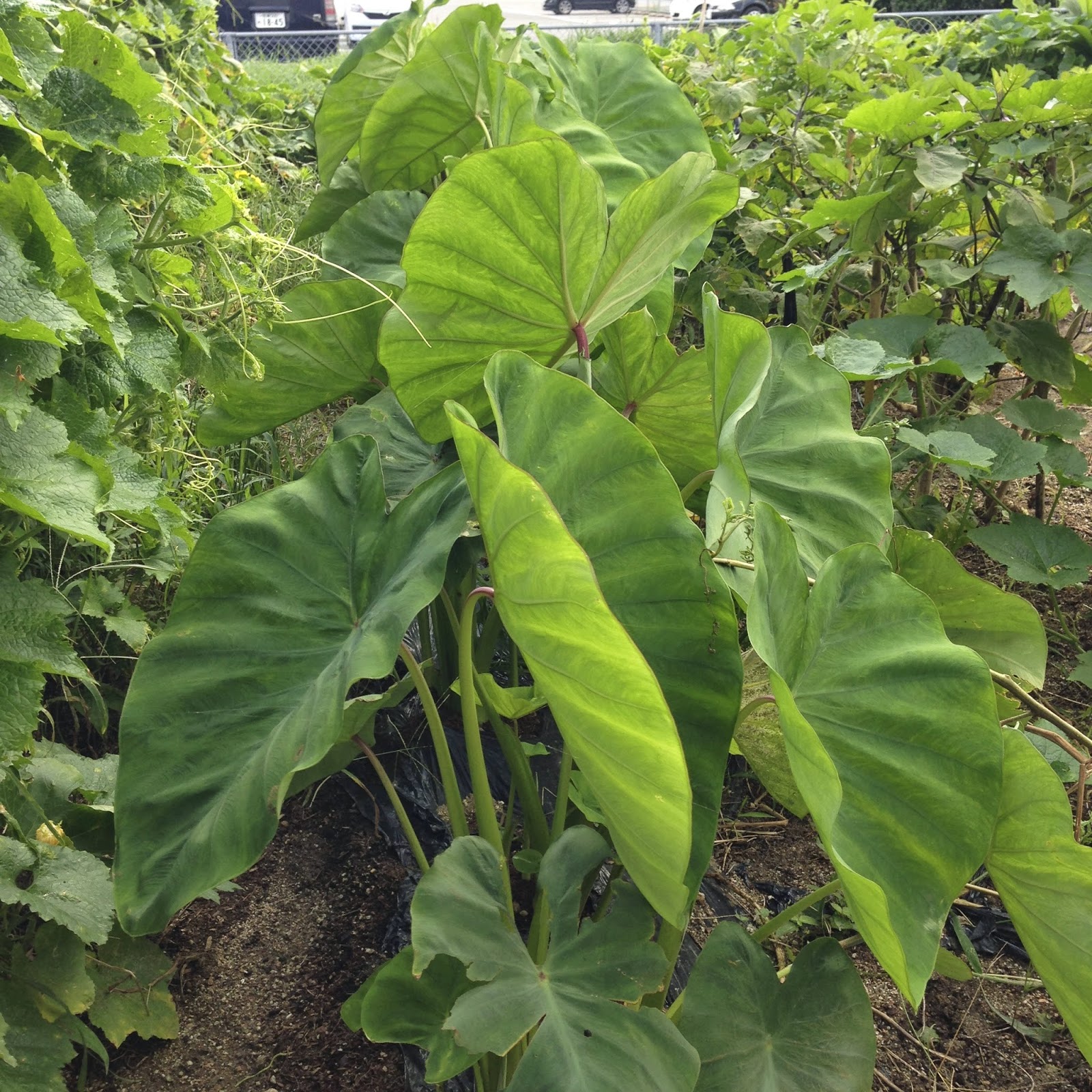 芽を出すのが遅く、7月初めまではとても小さかった里芋は十分大きくなって一安心だ。