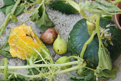 | 夏を片付けている時に、夏の名残りが顔を出したといった感じだ。 こんなカボチャは、ミミズ君の最高の餌だ。 |
