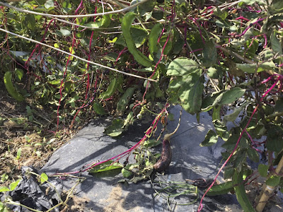 四角豆も台風後収穫はできなくなったが、種を取りたいので、そのまま置いている。