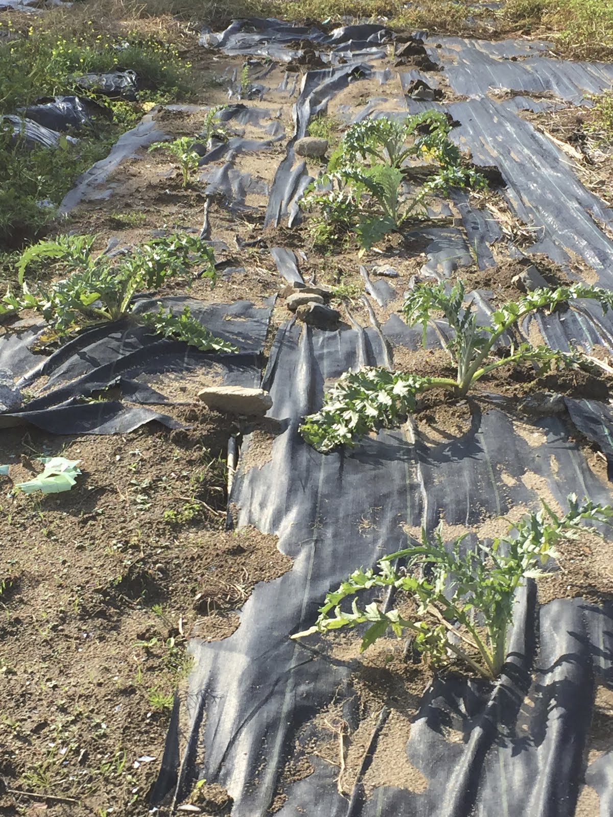 葉野菜は、虫や風にやられながらも、食べる分だけは。ミズナ、ターツァイ、小松菜、リーフチコリーなどが収穫できた。