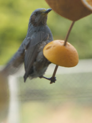 菜園のメジロ君の家ではメジロ君とは会えず、遊びに来るのはいつもヒヨドリだった。