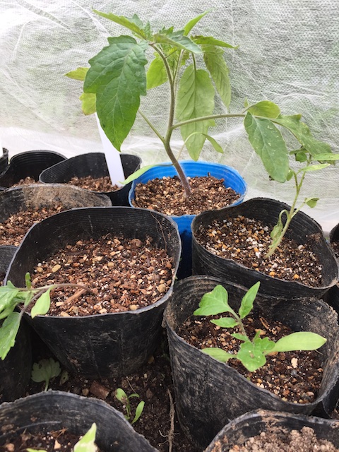 一方、温室で種から育てた苗は、ポオパオの中に移動してもらって畝への植え時を待っている。