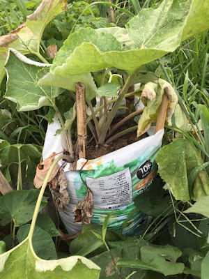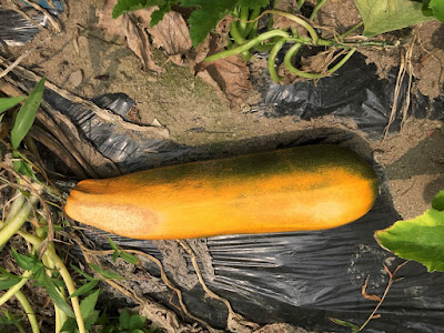 他のズッキーニも、いくつかを、こんな感じで種取り用に畑にそのまま残しているが、来月中には全てを収穫するつもりだ。