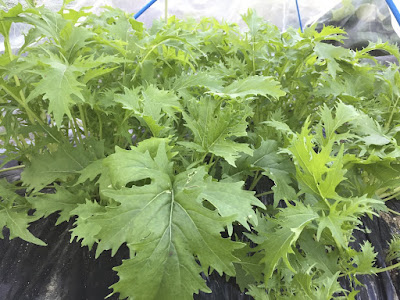 | ミズナは8月の終わり頃から、2週間に1回くらい、少しづつ種まきをしている。 これが、秋の葉野菜の収穫第1陣だ。 |