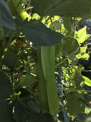 | 収穫忘れの四角豆は、早くも種取り用に残している。 |