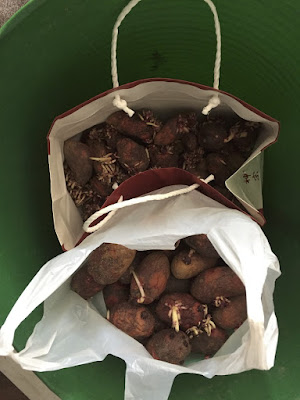 | この時期に使う種芋は昨夏収穫して、芽が出始めたもの。 |