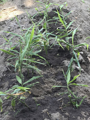 | 風で少し倒れたのと、水不足がたたって、ヤーコンな苗の一部が枯れたのは残念だった。 |