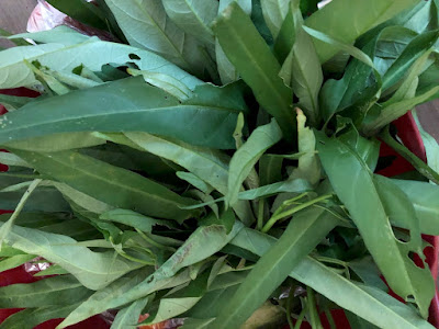 | こちらは収穫したエンツァイの葉。 肉との炒め物が合う野菜だ。 |