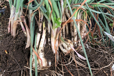 変わったところでは、葉タマネギと早どりのラッキョウを収穫した。