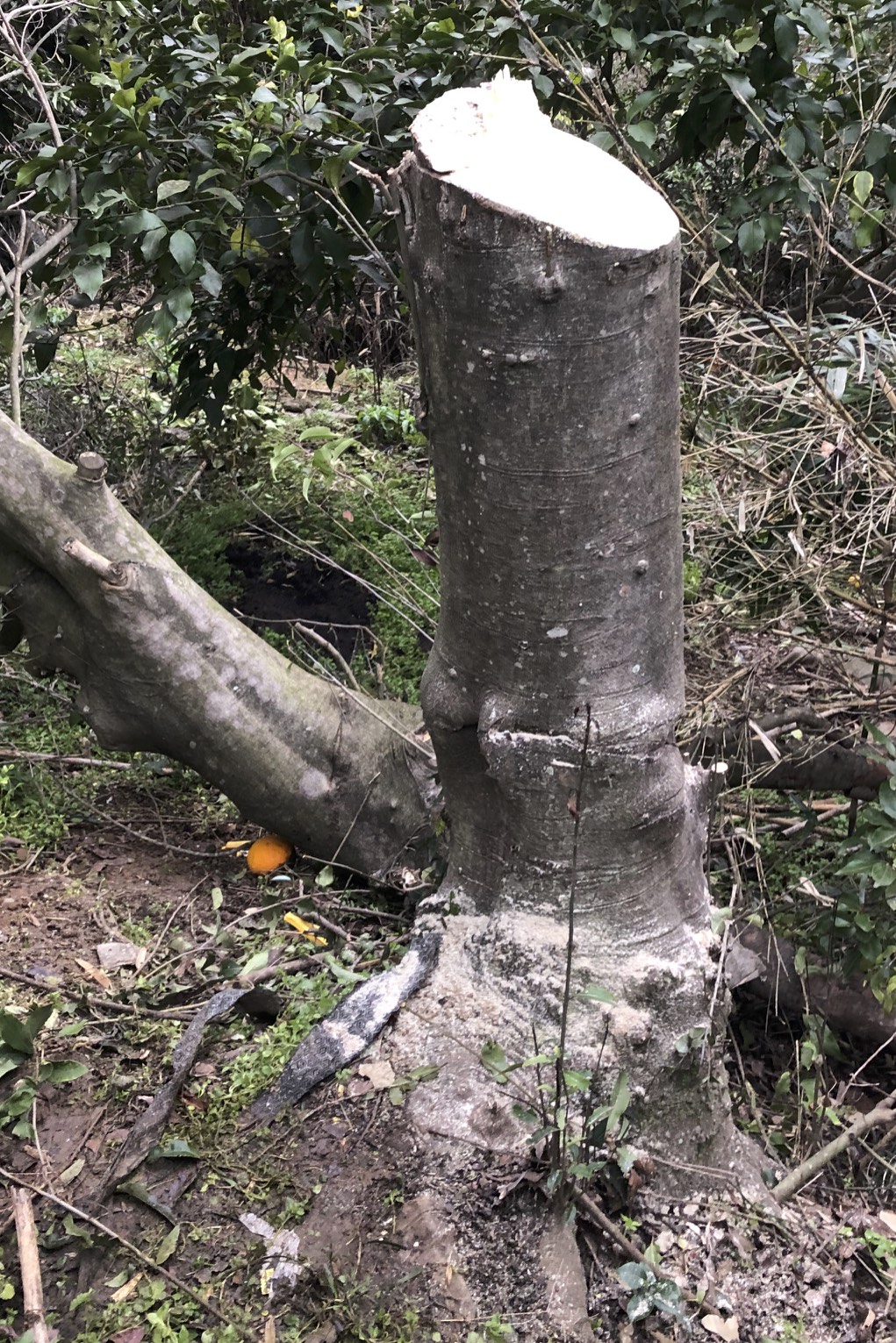 果樹園では、甘夏などに覆いかぶさって長年気になっていた雑木をついに切り倒した。