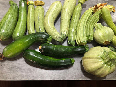| 6月に色々なズッキーニを収穫していたころの収穫風景。 |