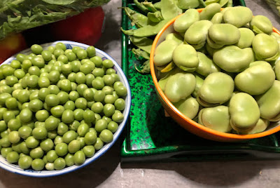 | こちらは6月中旬、グリーンピースと空豆の最盛期の収穫。 |