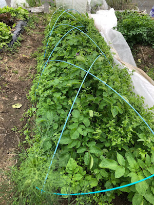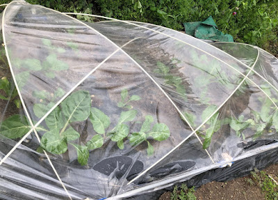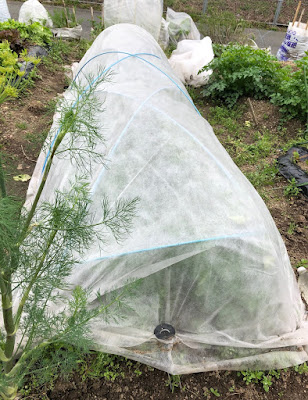 昨日はこの時期大きく育ち始めたスイスチャードの収穫が始まったのを紹介したが、このビニールトンネルではそんな苗を移植したものが元気に育っている。