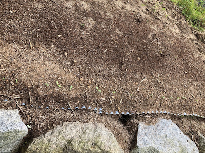 | カボチャは細くて長い畝だ。 今年は5種類の自家採取種を蒔くつもりだ |