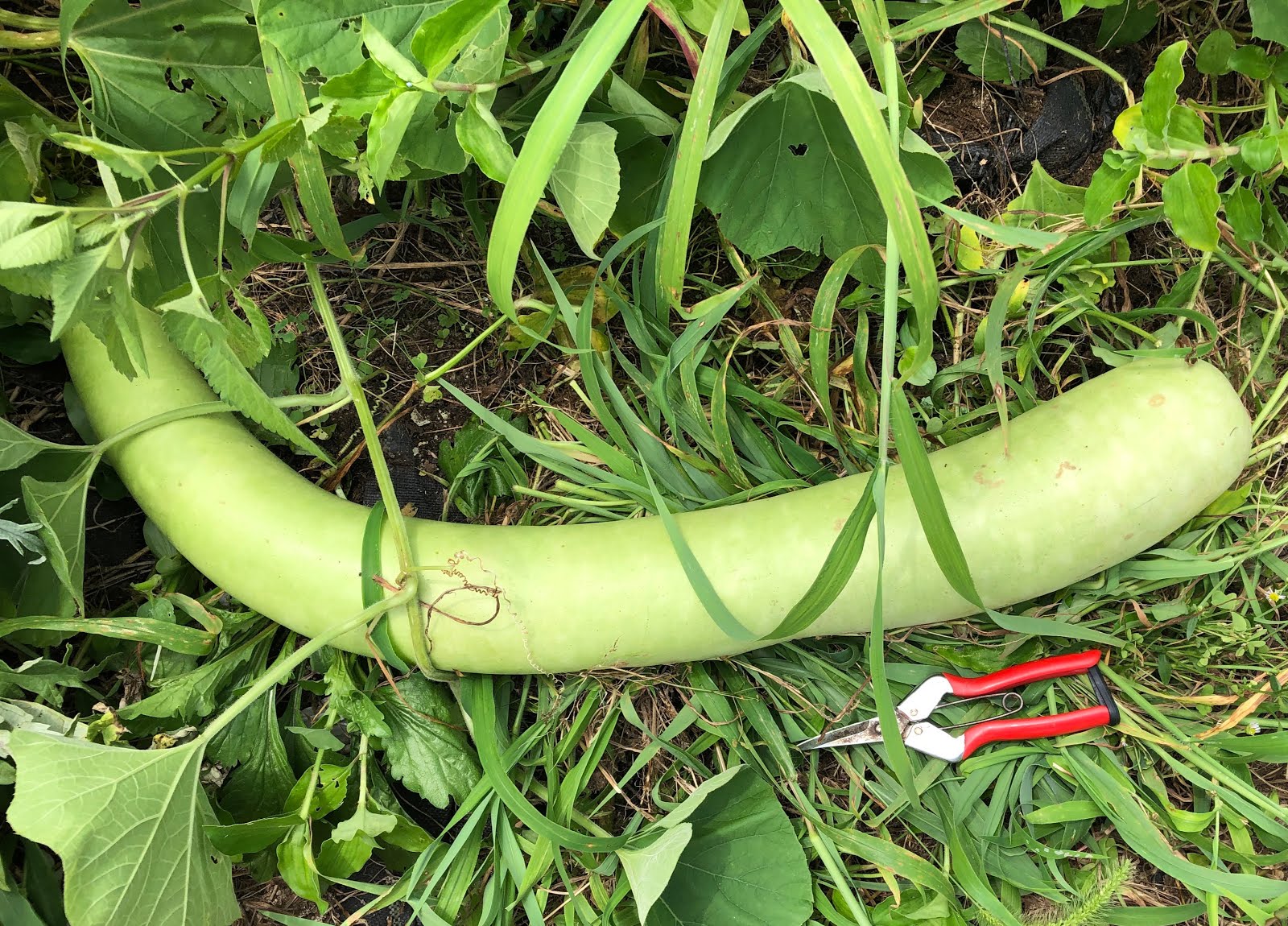 | カボチャやトランペット型はそのまま置いていても食べれる。 ただ、長いズッキーニは時間を置くと実が硬くなり味が落ちる。 |