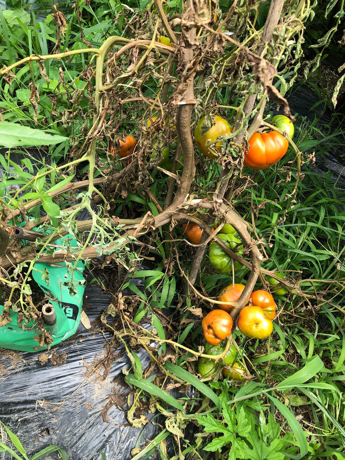 というようなことで、雨が多い中でも夏野菜の収穫も忙しかったが、雑草はとても元気で、運動不足解消に草抜きを頑張った。
