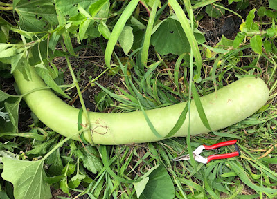 長いズッキーニの1本は120cmあったのでオブジェ用に収穫したが、連日の雨で保存中に腐れてしまって残念だった。