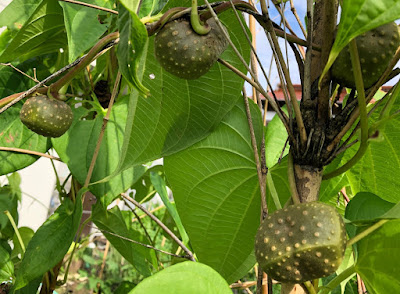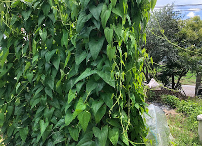 ツクネ芋と同じ山芋の仲間の宇宙芋は2年目の栽培だが、ムカゴ芋が大きくなりつつある。