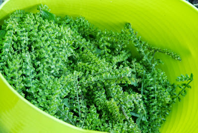 そこで今年は、下の写真の様に、シソの穂の先端に少し花が付いているものを中心に収穫した。