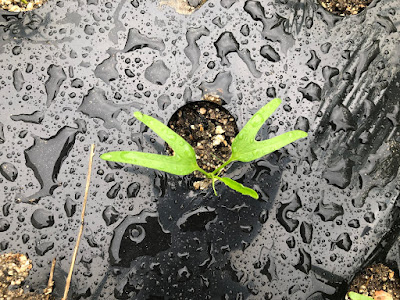 そして3箇所目は、この春エンドウ豆を育てた畝で、ここには2本の苗が育っている。