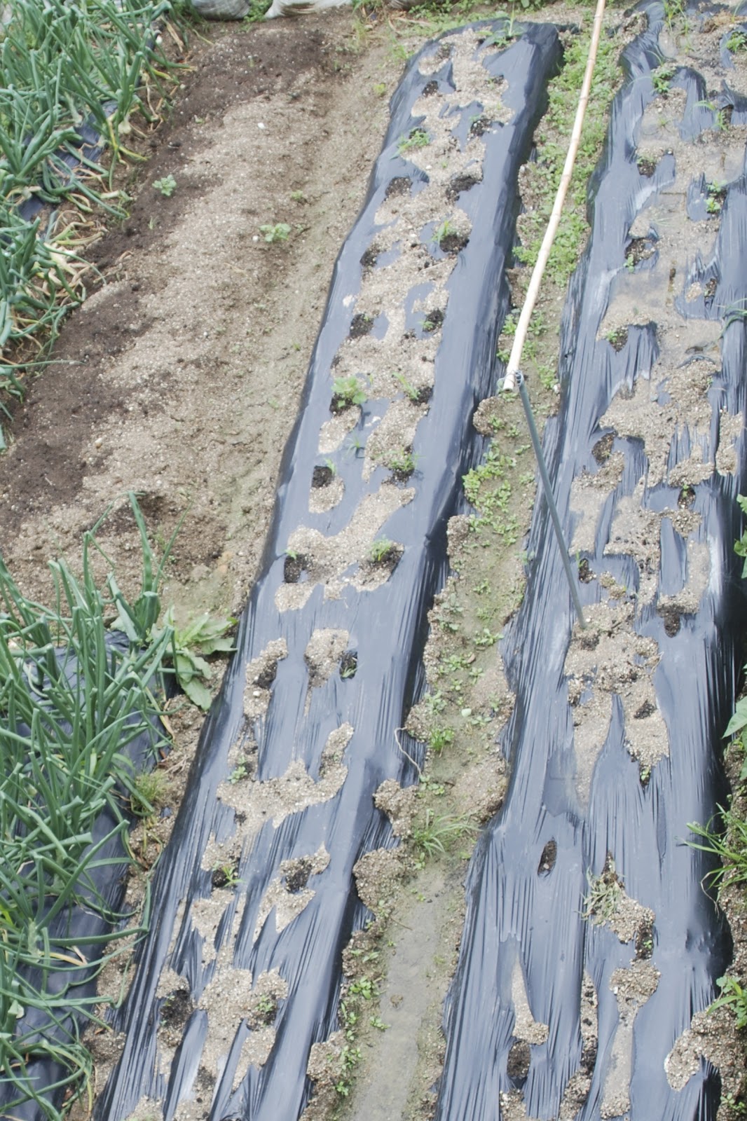 さて、下の写真はショウガ、ウコン、ツクネ芋の畝。