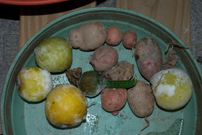| 今回もみみず君が喜びそうな冷凍解凍解凍後の梅と屑ジャガなどを餌として与えておいた。 |
