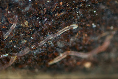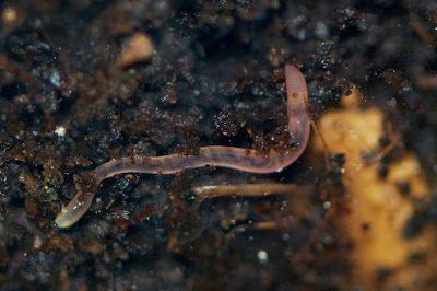 透き通ったピンク色のシマミミズの赤ちゃんだ。