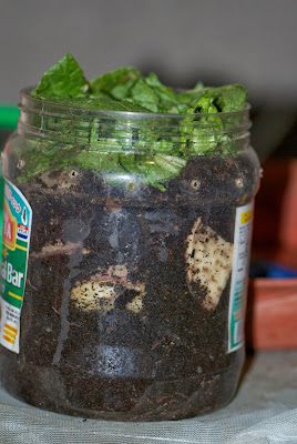 そこで、一旦観察小屋の内容を8割り程、皿に移して、サンドイッチ状に腐れかけて食べ易くなったサツマイモスライスと多くの卵と赤ちゃんを含んだ堆肥を重ねていった。