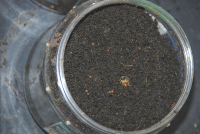 | 先月設定した観察小屋の孵化実験。 この中に300個の卵と、下の方に少量の食料を入れておいた。 |