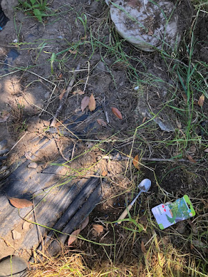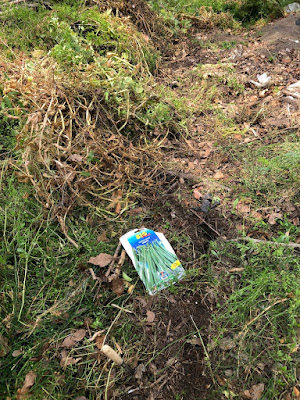 エンドウ豆の苗は枯れて周りには雑草が生い茂っているが、エンドウ豆の苗を片付けてみると、そこにはさほど雑草が生えていないスペースがあった。