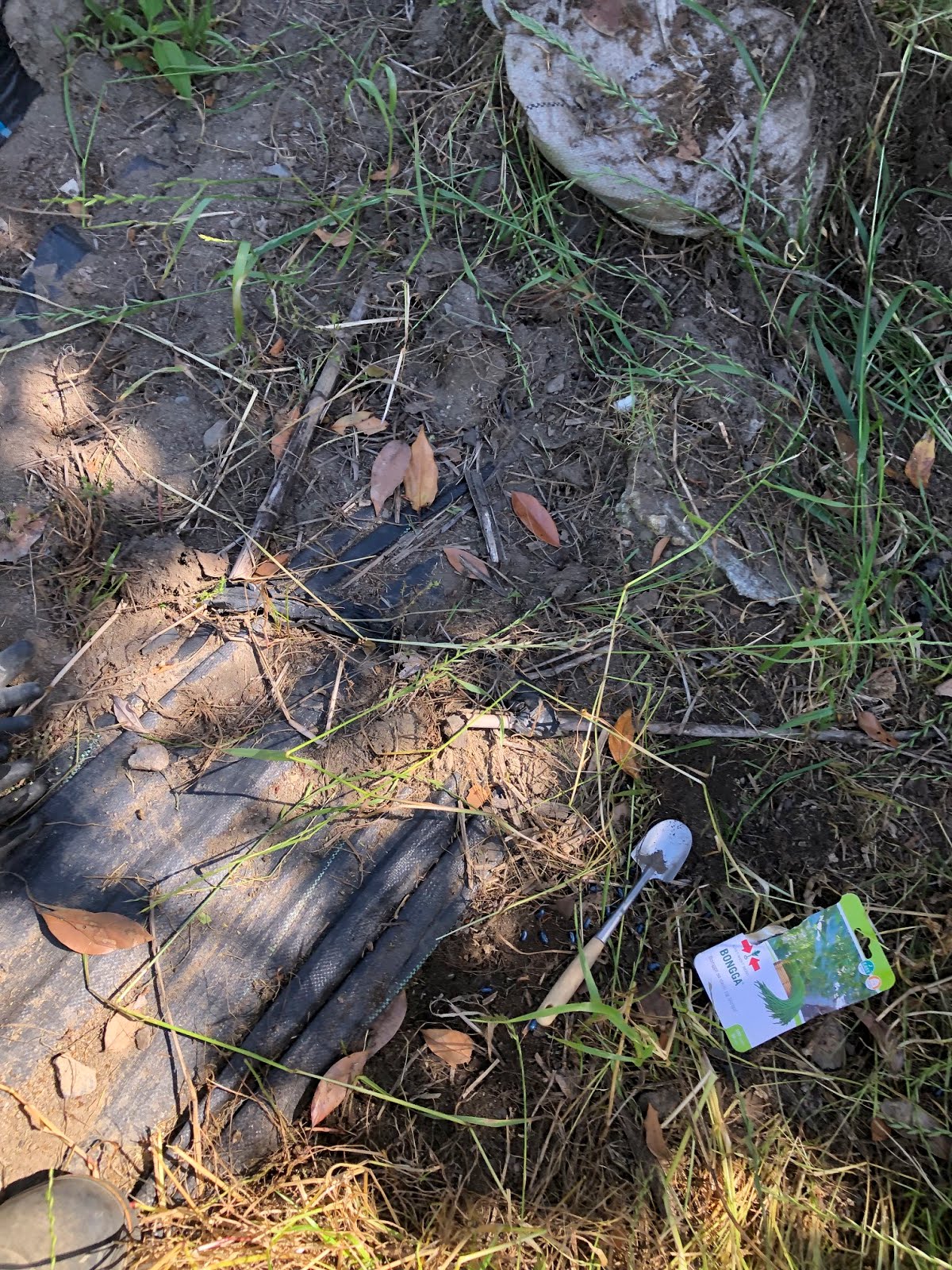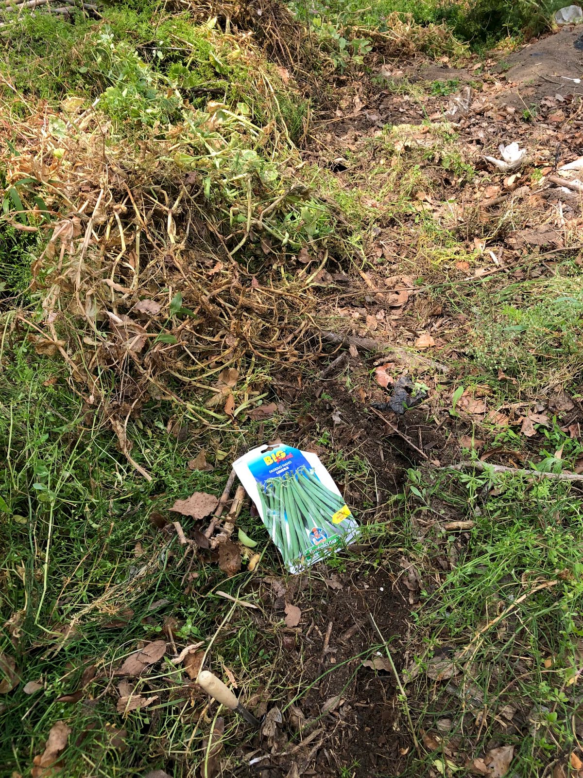 エンドウ豆の苗は枯れて周りには雑草が生い茂っているが、エンドウ豆の苗を片付けてみると、そこにはさほど雑草が生えていないスペースがあった。