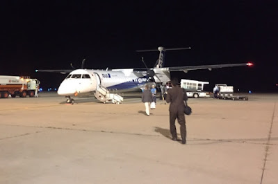 | 昨夜の新潟空港。 今回は行きも帰りもプロペラ機。 |
