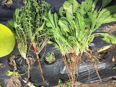 | リーフチコリーは収穫して帰った。 葉が大きくなると苦みが強くなるようで、早めの収穫の方が食べ易い? |