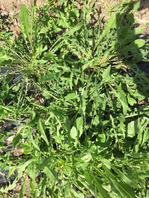 | リーフチコリーは収穫して帰った。 葉が大きくなると苦みが強くなるようで、早めの収穫の方が食べ易い? |