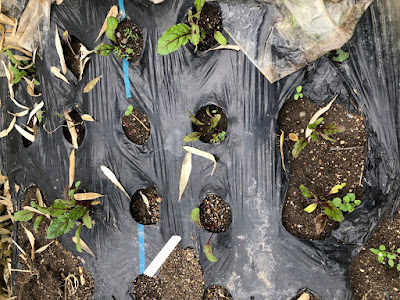 また、残り1/3のスペースでは、ビニールトンネルのサイズが蒔いた種の範囲より少し小さかったので、結果として何も掛けない苗が10本ほどできた。