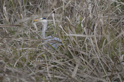 こちらは、菜園側の小川に茂る草の陰から、顔を見せているアオサギ。