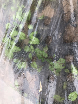 そして、40日後の姿をビニールの外から覗いてみると、パオパオトンネルの中の苗とほぼ同じくらいの大きさに苗は成長しているようだ。