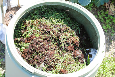 | 投入した1000個の卵胞が孵化して、無事大人になればこのコンポストはどうなる? 5ヶ月後の今の時期にはミミズ君が大量にひしめいていることになる。 |