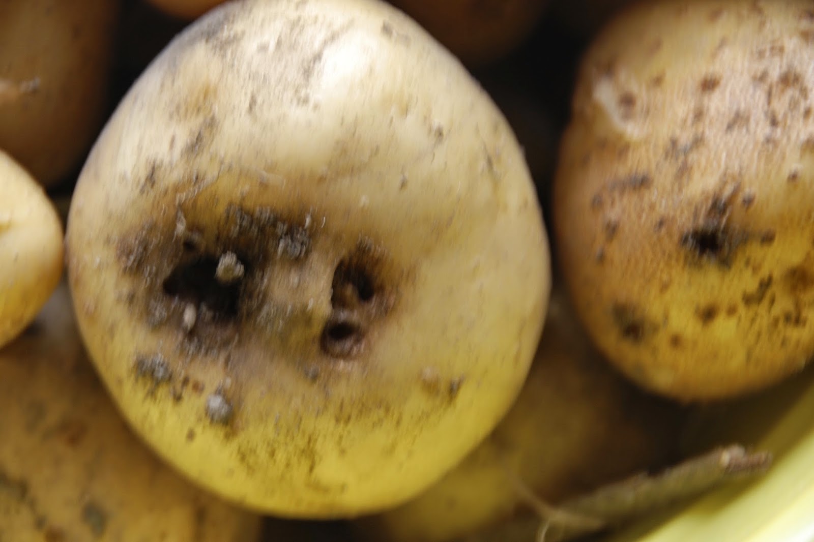 しかし、よく見ると蟻に食べられ穴が空いているものや、少し病気をしている芋もあった(下写真)。