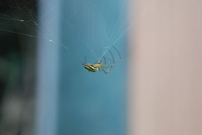 去年10月下旬のジョロウグモ。 この蜘蛛に比べると、最近みかけるジョロウクモがまだ若いのがよくわかる。 |