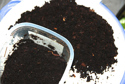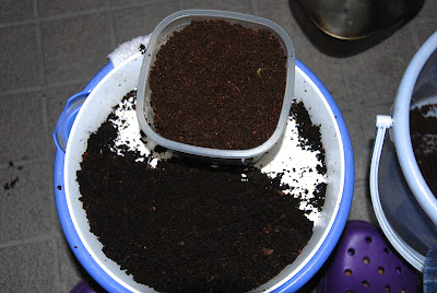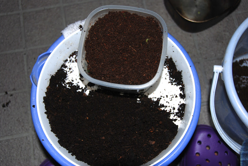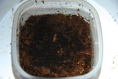 | 容器の底に僅かに古い堆肥を残し、餌の廻りには新しいココ繊維を入れておいた |